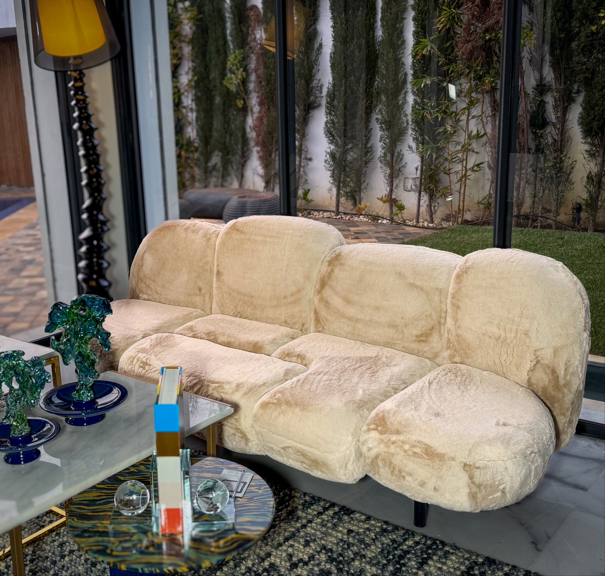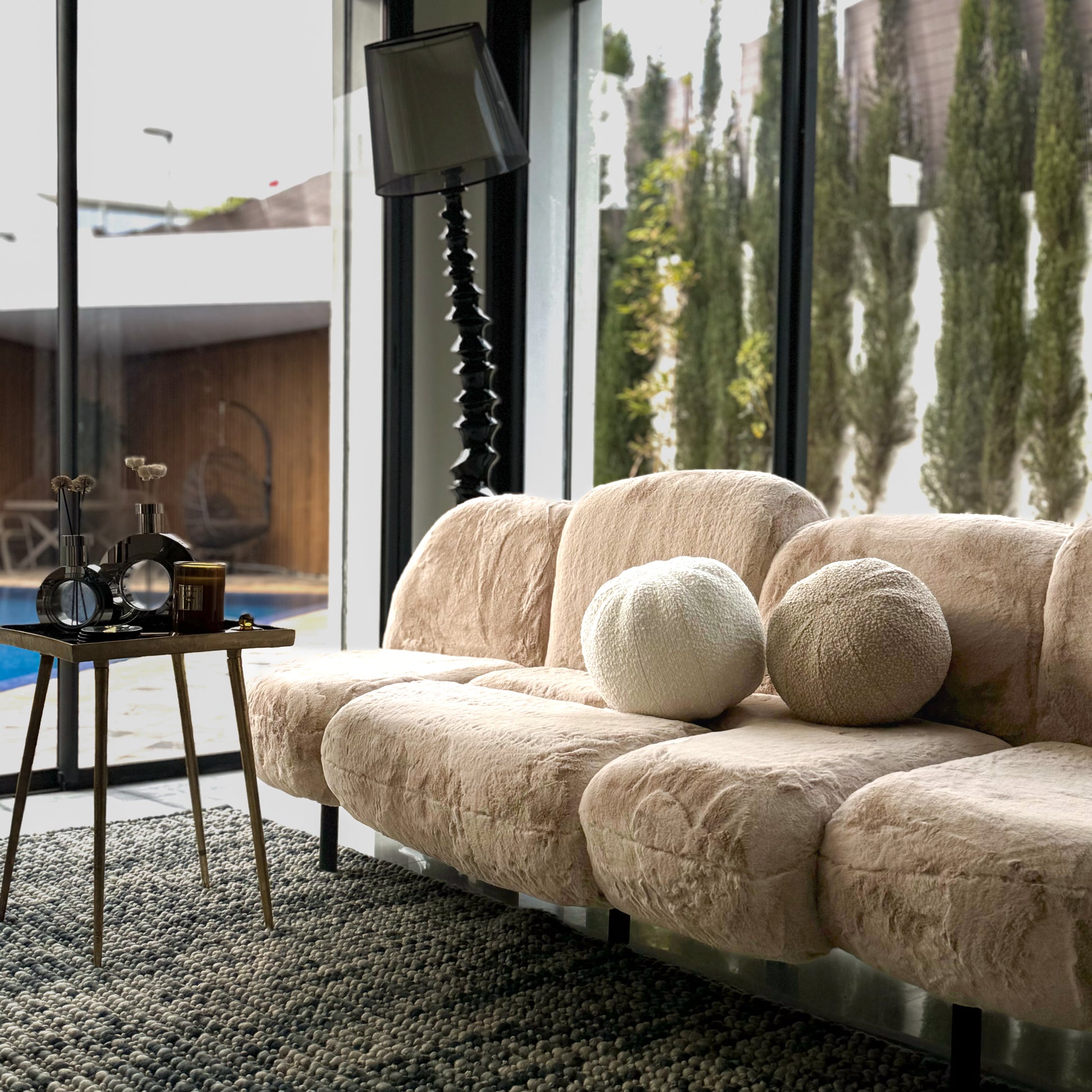 Ce canapé au design audacieux et inspiré de la nature séduit par son revêtement doux en fourrure beige, évoquant un nuage enveloppant. Ses courbes organiques et sculpturales offrent un confort exceptionnel, parfait pour un salon moderne ou un espace détente. Les pieds fins en métal apportent une touche légère et raffinée, équilibrant harmonieusement son volume généreux. Un mélange idéal de style et de confort pour une ambiance chaleureuse et contemporaine.