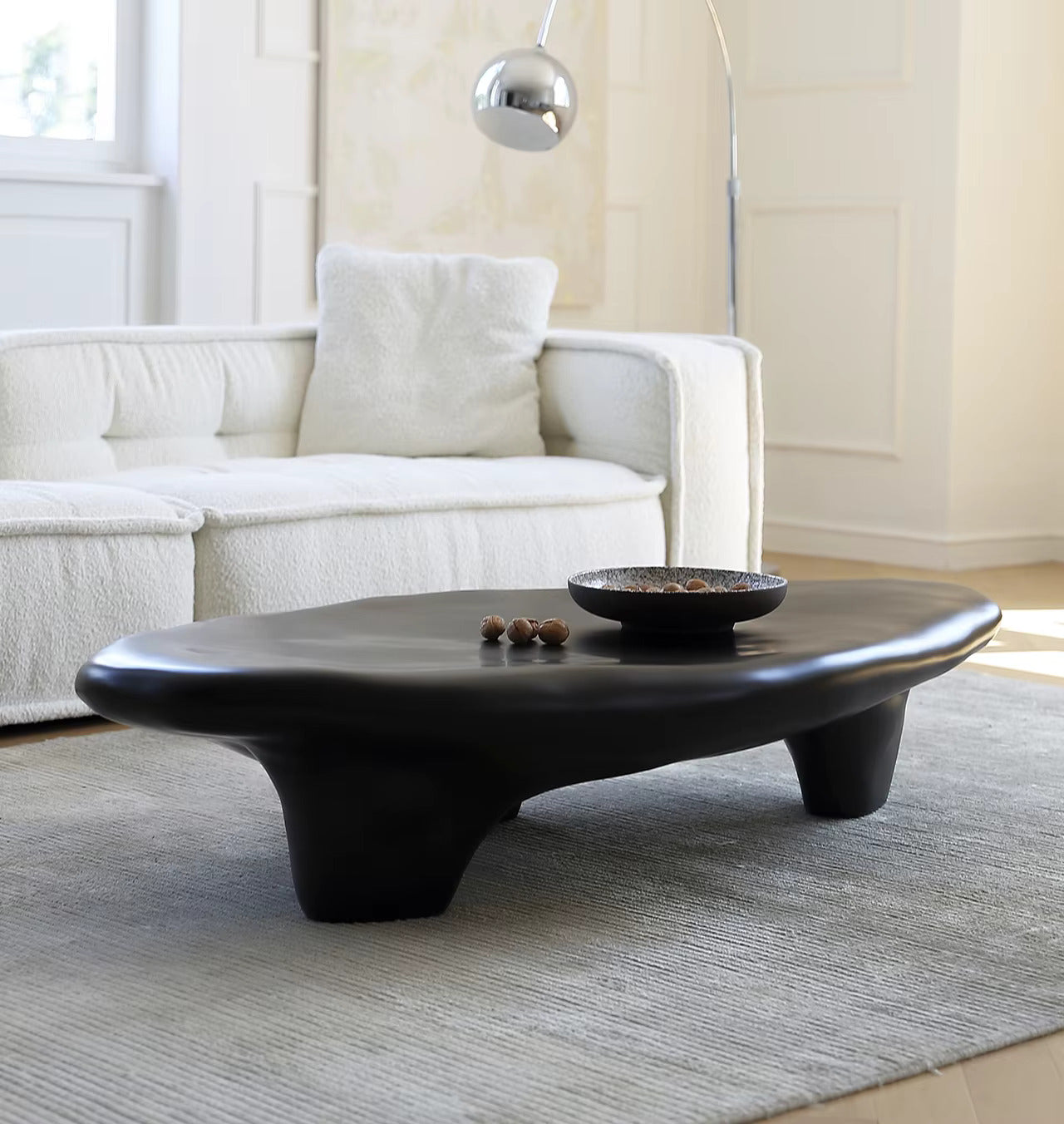 Table basse au design organique et épuré, avec une finition crème douce et une texture lisse. Son style sculptural repose sur trois pieds arrondis, alliant stabilité et élégance. Parfaite pour apporter une touche moderne et naturelle à votre intérieur.